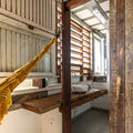 A decoração do apartamento conta com peças antigas recuperadas e peças de mobiliário concebidas a partir do reuso de materiais.
